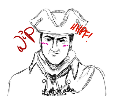In 1793, as Arno and Élise worked to topple Robespierre and his Reign of Terror, they managed to find a bit of free time. Élise took Arno to artist Joseph Ducreux, whose art was famous for their use of less formal and more fun expressions. Ducreux gladly agreed to paint a picture of Arno. Arno, as you can see, is not amused. Élise on the other hand, has to try desperately to hide her laughter.