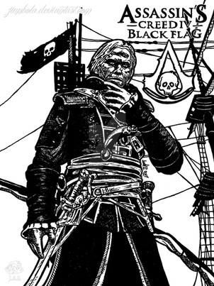 In 1715, he encountered a Man named Duncan Walpole, who was on his way to Havana to meet with Governor Laureano de Torres y Ayala. Hoping to get a Sum of Money, Edward killed Walpole and disguised himself as him. Hitching a Ride with Stede Bonnet, a kind Gentleman who would eventually make his way into Pyrate Infamy, he met the Governor and his Associates in Havana. Edward discovered that Torres and his Allies, Pyrate-Hunter Woodes Rogers and Julien du Casse, were Templars, and they were hunting for a Sage named Bartholomew Roberts, since they knew he was the Key to a grand Prize called the Observatory. Eventually, Edward was tired of not getting his Money quick enough, so he set out to claim the Observatory as his own to sell. The Templars discovered his Deception and had him arrested and shipped away on the infamous Treasure Fleet. Edward, with the Help of an ex-Slave named Adéwalé and a few escaped Convicts, escaped the Fleet right before a Hurricane sunk it, and they secured a ship which Edward dubbed the Jackdaw.