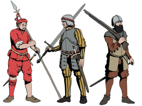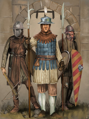 I'm going to cheat just a little bit here by using the term "Capetian" as a byword for "medieval Frenchmen". For reasons I'll get into later, this is more of a creative decision than an accurate one. I'll be delving into the early history of the House of Valois in this blurb, which technically is still "Capetian" given that they're a cadet branch of the House of Capet, but usually the branch that went extinct just before the Hundred Years' War is considered the "proper" House of Capet, as it were. It's just easier to call a drawing for French soldiers from the High Middle Ages "Capetian" as a single category since I really couldn't find enough distinguishing features to justify making two distinct faction sheets for your average French Crusaders and your average Longbow targets. Okay, housecleaning out of the way. We good? Good. Let's talk history.We'll start today's story the way that most episodes of French history do: with the death of a king. Up to this point, the Kingdom of West Francia had been tenuously ruled by the Carolingian Dynasty, named of course for the famed Emperor Charlemagne. The throne was left vacant, however, when King Louis V (the last legitimate male line descendant of the Carolingian Dynasty) kicked the bucket in 987. By this point, there had been a man pulling the strings of Frankish politics for quite a while. Hugh Capet, Count of Paris, was a duke of the Robertian Dynasty, the Carolingians' primary rivals, but he was also a descendant of the Ottonian Dynasty which ruled the Holy Roman Empire. This glowing pedigree, combined with a healthy sprinkle of support from the Archbishop of Reims, won Hugh Capet the election to the throne following the death of Louis. The Carolingians were thus thoroughly replaced by this shiny new Capetian Dynasty, whose descendant branches would continue to rule France for as long as nothing bad ever happens to the French monarchy. That couldn't possibly happen, right guys?