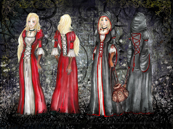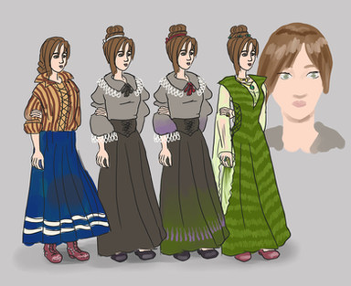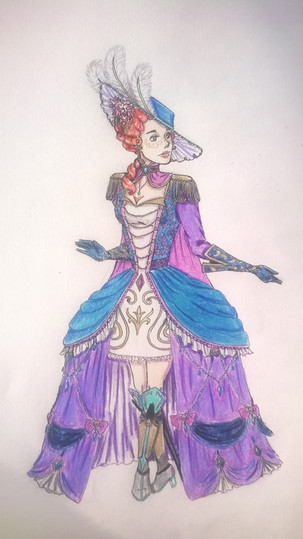 Carmen MacKenneth is the wife of Squire MacKenneth, mother of Wallace, and therefore is basically Grace's paternal grandmother. She is Scottish, like her husband, but due to her gender was not able to become a Mason like him. It's a real shame, because she was an incredibly intelligent individual with extensive knowledge of history and esotericism. Despite not being a formal member of the organization, she basically served as Squire's right hand man and unofficial archivist. She spent many hours sandwiched between bookshelves, researching Masonic lore, history, and dabbling in a little bit of old Celtic cantrips. In fact, after she and her husband fled to the Americas to escape their corrupted lodge, she composed the last great book of prophecy handed down from their ancestors. This tome doubled as a grimoire, and it's the same book which Ely digs up in my novel, which he uses to learn his magic spells to help Dawn in their misadventures.Design notes, this one is in desperate need of a clean up. I drew this a while ago so I can't remember what exactly threw me off but I do remember really having trouble with the lineart. I like the basic shapes so it probably just needs to be touched up at some point in the future. Her dress is meant to echo the Union Jack, because though her family were Scots living during the Jacobite Rebellion of 1745, they actually ended up siding with the British. Pretty much everyone and their dog who writes about the Jacobite Rebellion paints it as this very grand modernized Scots vs England showdown, but the more I've looked into the historical side of things, the less appealing this narrative became. Add this to my Scottish ex-girlfriend telling me her circle is actually quite tired of her government blaming everything on England and threatening independence instead of actually putting resources into solving their own problems like rampant gang violence, and I started thinking of the interesting stories I could get out of this dynamic. Squire and Carmen's rite ends up getting infiltrated by men who are more obsessed with power and conspiracy than the cosmic prophecy the Masons were bound to in ancient times. They spill so much blood and excommunicate so many of the old guard that the Masons as they once were cease to exist, and only the MacKenneths are really left to preserve the prophecy. Though the Jacobites are defeated, the Masons are still around and oversaturated with conspirators itching to murder the entire MacKenneth bloodline just to find out what they're hiding, hence why they fled to America. They had to ensure the prophecy came to pass, lest the world be without its heroes when the time finally cameβ¦