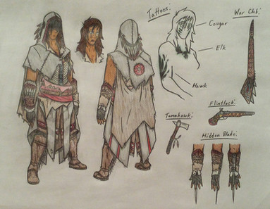 Bio: A descendant of the legendary Croatoan Mentor Kahente, Chaytan was born and raised to be an Assassin. He grew up always looking up to his parents, especially his loving father, a strong warrior of the Oglala Lakota. It was from his father that he learned to hunt and kill, and was also taught in the philosophies of the Creed and their conflict with the Templars, whom often sided with the militant Americans seeking to steal their lands. On Chaytan’s tenth birthday, his father rode out with his fellow warriors under the leadership of Chief Red Cloud to fight American armed forces seeking to arrest a Lakota man accused of killing a settler’s cow. In the ensuing fight, which would come to be known as the Grattan Massacre, Chaytan's father was shot in the chest and off his horse by the Americans, and he died before he hit the ground. While the day was won and all the Americans were killed, Chaytan was devastated. He and his mother arrived at the scene hours after the battle to recover the body, and a heartbroken Chaytan was given his father's necklace, an heirloom that once belonged to Kahente herself. Chaytan swore to carry on his father's legacy and take up arms to defend his people from the ruthless Americans and the Templars that used them as their puppets.