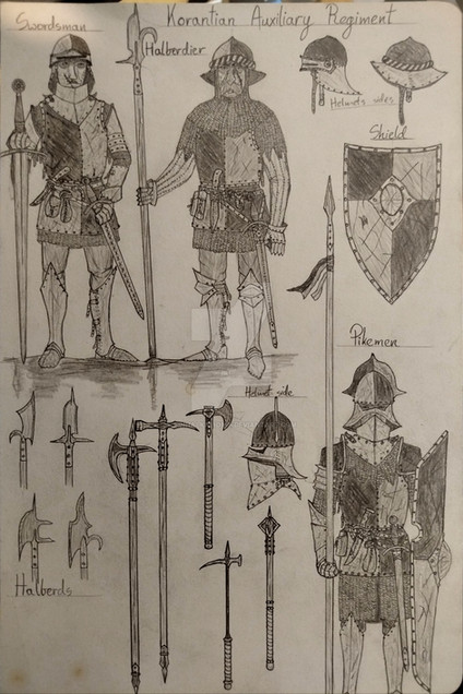 Design notes, uuuuuuuuggggggggghhhhhyep. Yep yep yep. I knew this was gonna happen. I knew I was setting myself up for this when I decided to make the Kingdom of Jerusalem its own faction sheet. I knew that if I set the standard that every little micronation is eligible for a sheet then I'd run into the issue of finding virtually no reference material in the historical record to draw from and I'd have to extrapolate four whole designs out of whatever scraps I could find only to feel like the end result is a disjointed mess that I'm not satisfied with. Oh well, I made my bed, I guess I have to lie in it. Idk, I guess it's not that fugly. I think on their own, each of these designs works decent enough, they just don't really feel like they jive together as a unit aside from the colors they share. If I wanna be nice to myself, I do think the regular and the elite synergize well with each other, and those are the two primary uniforms I'll normally use in a drawing anyway, so it's not a total failure. I don't often wanna be nice to myself tho, so it's still going to bug the shit out of me.