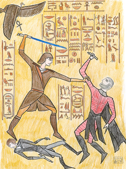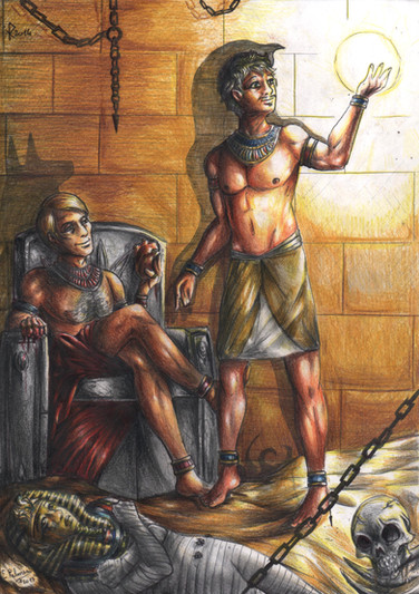 I admit, I had a hard time thinking up a setting for an Ancient Egypt picture. Most of the information I could find on the time period was very vague and not generally useful for a story. But then I remembered the Exodus story and it all kinda fell into place. I had a lot of fun with this pic, and doing the research actually did start to get me interested in Ancient Egypt.