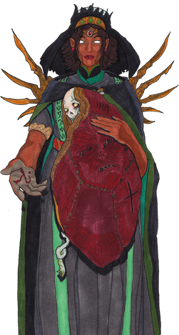 I present the most revered goddess in my personal theology, the Queen of the Dead, Hel. Hel is the most powerful entity in the entire Norse cosmos, and shares her name with the realm of the dead who perish from sickness and old age. The name ultimately descends from the Proto-Indo-European root "*ḱel-", which also becomes the "hel" in English "helmet" and the "cel" in "cellar". This gives us the sense that the original root seems to mean "to cover", like a helmet covers your head and a cellar is covered underground. In the context of the realm of the dead, it seems "Hel" was originally just a word for the grave, which of course covers the dead. It is hardly unusual for cultures around the world though to associate the grave as a gateway to a realm beyond the mortal coil like an afterlife or an underworld. In the Norse conception, Helheim is the everyman's afterlife, entered by passing over a river of swords via a gold-covered bridge, and entering the gate Nágrindr, which is guarded by the "noblest of hounds", Garmr. While for most, Hel seems a peaceful place where the dead may continue a reflection of their worldly lives on eternal farmland, there is a chamber where the wickedest men are sent. A hall called Náströnd is a twisted place made not of wood but of woven snakes, whose heads spray burning venom onto those trapped within. Hel is a fair queen, just but firm, as she takes her responsibility very seriously. Many sources describe her as "evil" for her capacity for torment, but this seems likely to be a later Christian demonization of a much more neutral goddess.Internally, Hel seems more to be chastised for her controversial parentage than she is for her rulership. She was one of three monstrous children of Loki and the jötunn Angrboða, born with half her body colored like flesh and the other half corpse blue. Odin, the paranoid god, feared the prophecy that Hel would one day loan her army of the dead to her father to destroy the gods at Ragnarök, and so he cast her into far off Niflheim to… have total authority over the dead. It's a little strange, which is another hint that there might be more to this story that has been lost to time. Indeed, for her authority over death, Hel is cited as the most powerful goddess in all the Nine Realms. When Odin's most beloved son, Baldr, was murdered with a mistletoe arrow, he was sent to Hel's realm instead of glorious Valhǫll. His ward Heirmóðr was given Odin's eight-legged horse Sleipnir to travel to the realm of the dead and plead for Baldr's return. When he arrived, though, he found that Hel was a benevolent hostess who treated Baldr and his wife with a feast fit for a king. She informed Heirmóðr that she can only allow Baldr to leave if every single being in the Norse cosmos weaps for his loss. After Baldr gave Heirmóðr gifts from his new home to be sent back to his parents, Heirmóðr rode back to Asgard and informed them of the stipulation. It is said that the gods were able to get every single being to weap for Baldr, all except for the jötunn Þökk, who tartly said that neither Odin or his beloved son ever did anything for her. Snorri Sturluson suggests that there is a common tradition which identified Þökk as a disguise of Loki, the one who put the mistletoe arrow in Höðr's hand to begin with, which is hardly a stretch of the imagination. Either way, the result is the same, Baldr remains in Helheim, and the precedent is set that even the gods cannot escape death. Death is neither avoidable nor malevolent. It is simply something that happens to all of us, and can happen at any time. The queen waits patiently to take in and comfort those of us that won't be selected for Odin's very picky army. Scary as she can be, she is the motherly custodian of our ancestors, and I should very much hope to meet her when my time comes.