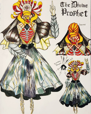 Design notes, this is another one I mostly came up with whole cloth, though I took heavy inspiration from the famous Catacomb Saints that make the rounds on the internet every Halloween. The asymmetry was a little unwieldy at first, but I think I brought it back around. Most modern depictions of Hel tend to paint her as mostly black and white on either side with some blue elements sprinkled in, but I wanted to experiment with a lighter color palette to make my interpretation stand out. I wanted to make her more eerie than scary, the sort of entity who commands a ghostly presence. You certainly wouldn't want to be on her bad side, but if you respect her, she will respect you. I'm not normally one for spooks and ghouls or other Halloween stuff, but in this case, I actually do like this element of creepy beauty. Could be tweaked here and there, but it grows on me the more I look at it, and I hope that means the goddess approves ^^