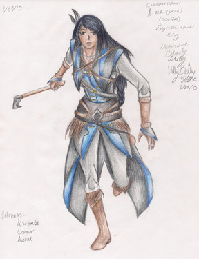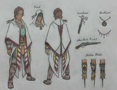 Bio: Meeaquous was born into a small Croatoan village to Assassin parents who loved her dearly and raised her in the ways of the Creed. She was often brought along with her parents for missions, though she herself mostly just observed and stayed safe. In 1579, she and her parents were sent by the Mentor, Chief Wahunsenacawh, to Iroquois territory up north to help fight against the St. Lawrence Natives. Meeaquous made good friends with several Kanien’kehá:ka children, and they gave her the nickname, Kahente, meaning “before her time” in their language. Kahente carried the name all through her life.