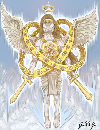 The angel Metatron is one of the most enigmatic figures in all of classical Jewish mythology. Today mostly resigned to the confines of Rabbinic studies and the mysteries of Kabbalah, Metatron was once a much more widespread and popular figure to the people of the Holy Land, even to the point of becoming an existential crisis. The Babylonian Talmud recalls the heavenly journey of the 2nd century rabbi Elisha ben Abuyah. At the end of his trials, Elisha bears witness to a radiant angel permitted to stand in God's throne room while the rest of the choir is forced to sit. Overwhelmed by the audacity and power of this angel, the rabbi exclaims that "there are two Powers in heaven," rendering him the worst heretic of all. So who then, is this "Little Yahweh" as the historical sources often call Metatron, this angel who is elevated so high as to be confused for and named after the supreme god of Israel? Well, that's a little complicated. The name "Metatron" is almost definitely a loan word from another language, though from where exactly is a bit unclear. Two of the more likely answers are either from the Latin "metator", referring to a military official who goes forth and prepares the way for the army, or Greek "meta thronos" meaning "beside the throne", i.e. the Throne of God. If the image of a military figure serving as God's right hand angel sounds familiar to you, you're not alone. Some believe that originally, Metatron was an epithet for the archangel Michael which split off into its own entity, and then this figure merged with other esoteric tropes in early Judaism to create the more clear cut internal backstory:In the Third Book of Enoch, a mysterious apocalyptic text following the tradition of the previous two Books of Enoch, it is described that the antediluvian patriarch Enoch was transformed into a being of fire, brass, and lightning upon his ascension to heaven thanks to his righteousness. This entity was thus dubbed Metatron, and was second only to God himself, even being called the "Lesser Yahweh" or "Little Yahweh". It is difficult to tell where or how exactly this tradition came about, but it was clearly a very popular image. So popular that the early rabbis had to stomp it out before the notion of the aforementioned "two Powers in heaven" got too out of hand. Some speculate that the berating and whipping Metatron received for making Rabbi Elisha commit heresy was a reflection of this fear. Some even speculate that it was specifically a response to the early Christians and their comparatively heretical claims that some poor carpenter ascended to heaven as God's equal. Though to be fair, these two heresies may have been philosophically indistinguishable to most locals at the time, so these two theories are not mutually exclusive.
