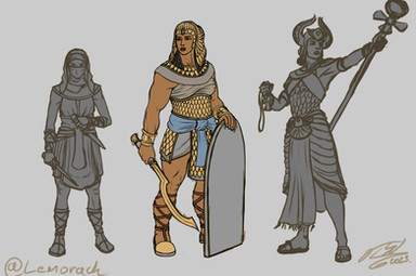 Design notes, there's not really any contemporary depictions of Nitocris, at least that I could find. I'd imagine this is because she never actually got to succeed her mother, who does actually have a statue. Instead I kinda just slapped together some design details from various depictions of the God's Wife of Amun throughout history, since they all seem to share a similar wardrobe. By far, that headdress was the biggest pain in the ass of the whole composition. I got there eventually, but tall headwear is always annoying to fit on my reference sheet format. Sadly, all of human history is one long struggle to see who can don the biggest hat, so this won't be the last. God help me if I ever find myself drawing Marie Antoinette-