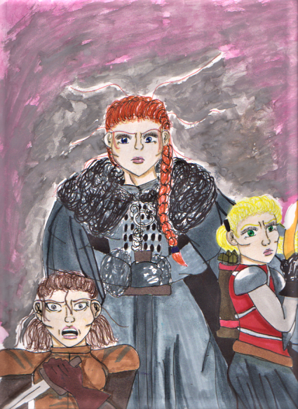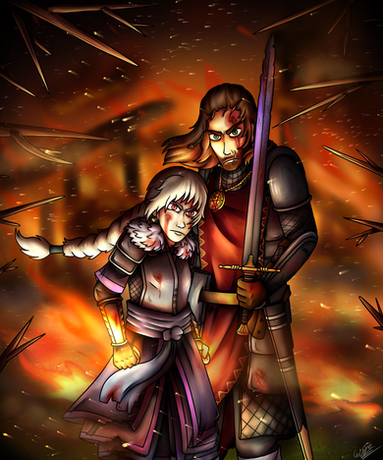Your picture of the battlefield and the two assassins is awesome and it must have been a pain to draw the outfits XD