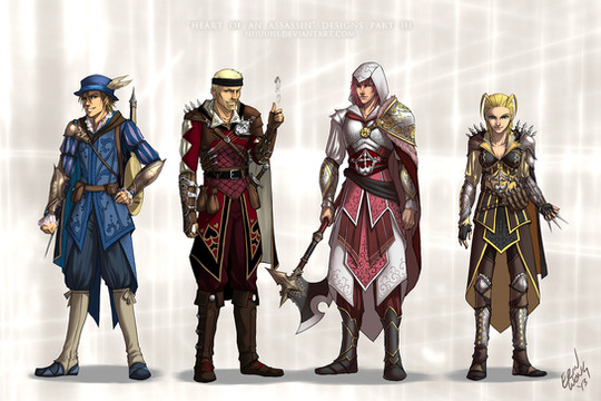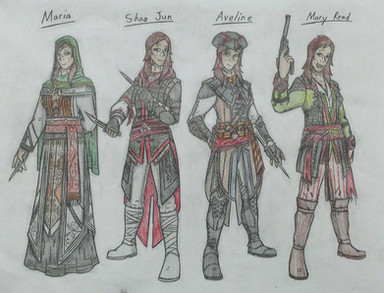 Some of the other side characters that play a role in my new AC fanfic, “Nothing Less”. I might make full reference sheets for these guys one day (Though Ava already has two XD) but for now I'll just give a short little mini-bio for each one.