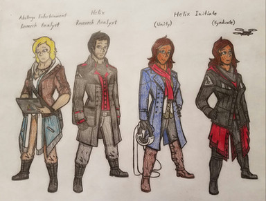 Ruby Mills: Ruby was a poor orphan girl who grew up on the streets of New York City. Given her environment, she learned very quickly how to survive. Despite her environment though, Ruby always had an energetic and chipper personality, as well as a sense of adventure. She joined the Assassins in 2012 after being rescued by Ben Dylan from Daniel Cross. Since then, she's helped work with various tech for the Assassins, using the programming skills she learned from her time in the hacker group, DedSec.