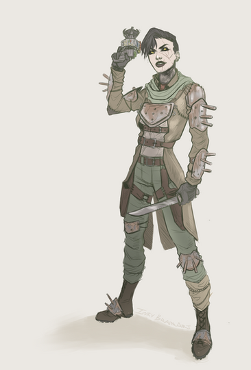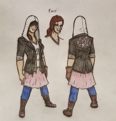 Moving out of Eagle Crest and clockwise around the big return drawing, allow me to introduce you to Alice "Patch" Cerigotto. Patch is a masterclass gray hat hacker whose been running around having adventures in Cyberspace for as long as the internet has been around really. Born 1974 in San Rafael, California, just north of Silicon Valley, Patch was a tech geek from the start. She was the kind of kid who would take apart every TV and radio in the house that wasn't bolted down… and then unbolt the ones that were, just to see how it all worked. This translated into becoming a skilled mechanic, which was her source of revenue in high school. However, as the 90s rolled around with the advent and increasing public access to this new fangled thing called the Internet, it was programming that attracted her interest going into college. She became a wizard at dissecting lines of code just as well as she could take apart a car, and eventually she'd become enough of an expert that she could make a living taking hacking contracts. She could've just been a run of the mill programmer, but Patch was a bit of an adrenaline junky.Her entire life, though, almost quite literally came crashing down. An accident hospitalized her for weeks, and severely damaged her nervous system. She had to have a risky brain surgery done to restore her motor functions, and while the process was long, she thankfully made a full recovery. Of course, Patch is a special kind of nutcase. Upon finally being allowed to return home to her garage, her first thought was "hmm wait, this thing in my head is technology, that means I can poke around and try to tinker with it." And so, against the wishes of any logical person, she did, and being the whiz she is, she made a breakthrough. Through her tinkering, she modified her implant into a neurological jack with which she could plug herself into the internet as a virtual world. Just sitting in her chair, she could program her entire nervous system to perceive Cyberspace as a physical place she could explore and program from within. It became a unique boon to her hacking contracts, as she could now blur the line between her hacking skills and her mechanical skills.