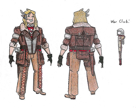 Clothing wise, I had to sort through all sorts of tacky 90s fashion to compose something more unique. Once I had the clothing down, I just started slapping all sorts of 90s-ass "mobile" devices on her. Gotta love that Nintendo Power Glove looking thing. The black circles around her hat are actually meant to double as the jack ports leading into her brain. As a mortal she could literally just grab a cable and plug it in through those holes. When she wanted out, she'd just reach up and pluck it out from within Cyberspace, the movement of her avatar matching the same gesture in real life.