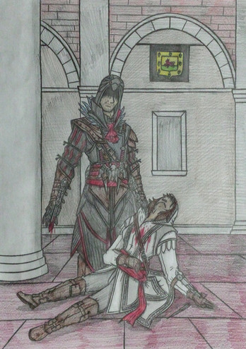 This is sad D: It looks like the assassin is sorry to kill this Roman noble, maybe they were a couple or friends?