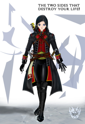 Shortly after leaving DedSec, Ruby witnessed a bizarre sight while walking the streets of New York at night. She saw a man parachuting onto a local Abstergo Industries building, and minutes later he came rushing out the front door with a mysterious object in hand before vanishing down the road. A second man rushed out of the building not long after, a gun in his hand and a look on his dirty face that said he clearly hadn't taken his meds in a while. The scruffy man pinned Ruby against a wall and demanded to know where the first man went. She probably would've been shot there and then had it not been for the intervention of a man named Ben Dylan, who fought the creep off and brought her to safety. He explained the madman was named Daniel Cross, an agent of the Templar Order that Ben fought against. After a long talk, Ruby learned of his Brotherhood, the Assassins, and was definitely attracted to their goals. The two parted ways but had many encounters with one another afterwards. Ruby was eventually made an official member of the Brotherhood, and she's been putting her skills to their use ever since.