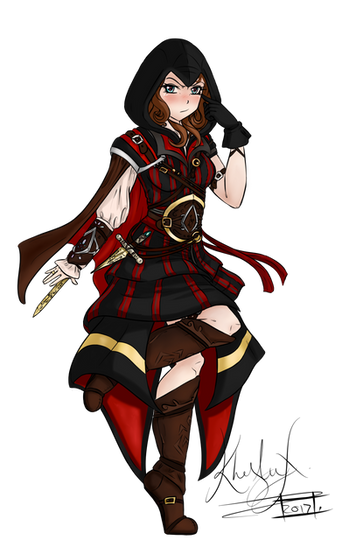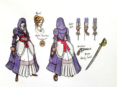 As she grew older, she was slowly introduced to the Assassin Brotherhood by Connor. He taught her all about their philosophies and goals and enemies and even started training her to fight like they did. She soon became an Assassin in all but name, officially joining the Brotherhood in 1786. From then on, she swore to put an end to the Templars and their plot to take over the continent with their American allies. She took up arms alongside Connor in the Northwest Indian Wars, and took up many smaller investigations throughout the US and Canada. On one such mission in 1791, she met a dashing young Canadian Assassin named George Deryn. The two worked on the mission side by side, forming an immediately strong bond, and met several times afterwards. The two fell deeply in love, and got married in 1792. They settled in a friendly little neighborhood in York, and there they had their daughter in 1795. They named her Aveza.