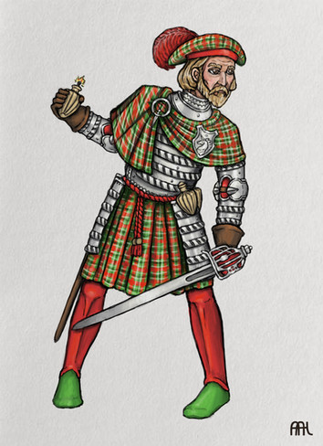 It occurs to me I got a few random Drake Hero OCs I haven't shared yet (aside from the more spoilery ones I alluded to not being ready to publicize). As I finally reach the last of my archived material after being back for a little over four months, I figure I should correct this mistake while I'm still pushing the daily upload thing to its limit. A lot of these are lore-pending, i.e. I have a basic idea of how they fit into the Drake Hero narrative, but the details are still being buffed out. I figured I'd start with the ones I'm most confident about, so I present Squire MacKenneth, father of Grace's Uncle Wallace MacKenneth and thus functionally her paternal grandfather. Born sometime near the beginning of the 18th century, Squire was a Scottish Freemason who operated during the time of the Jacobite Rebellion of 1745. Conspiracy and corruption overcame his rite, however, leading to his family fleeing to the Americas once lines were drawn and crossed. He managed to sneak away the organization's most ancient secrets, which may or may not come into play during the life of his granddaughterDesign notes, though the colors really disagreed with my scanner, I'm quite happy with the line art at least. It was a lot of fun to explore compositions which included Freemason regalia, and it blended surprisingly well with his coat and kilt. This is also one of the first and probably last tricorn hats I've ever satisfyingly put to paper. Those things look so goddamn cool but they're an absolute pain in the ass to draw :v I may revisit this and clean it up where it needs cleaning some day, but for now there's not much else to say. Or maybe I'm just too sick right now to critique my art harder. I think the solution is more ibuprofen. Yes. I could probably insert a joke about Scotland here but there hasn't been a drop of Scottish blood in my genes since the middle ages, so that sounds dangerous. I'm pretty Irish but according to my Scottish ex-girlfriend, I'd be better off not attempting to equate those two things lest I incur the wrath of Nessie or something. And I'm too Swiss to incur the wrath of anyone, quite frankly.