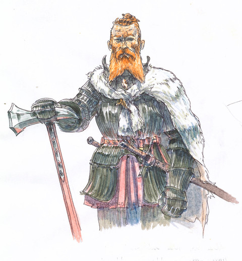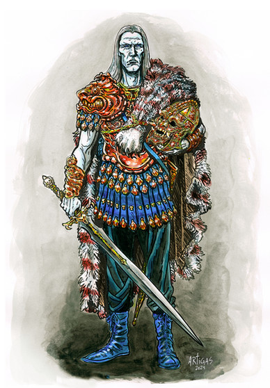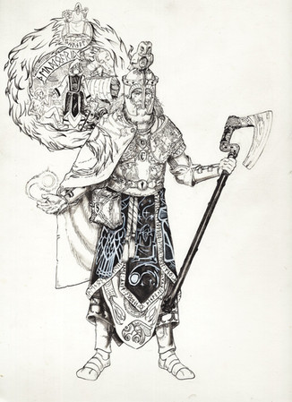 Design notes, I'm not entirely certain what's going on with his proportions. That really got away from me, it seems. I'm happy with the composition itself, though. Obviously my base was the cardinal uniform you'd expect of a Spanish Inquisitor… that is of course if anyone could expect the Spanish Inquisition. Most of his bits and baubles are just leather accepts to highlight the more medieval warrior aspect of his character. This is a rugged pilgrim who has walked more miles than anyone will in their lifetime. He also has a big ass sword, because of course he does. Normally I'm not a huge fan of big ass swords, as they're kind of a pain in the ass to incorporate, but they have their place. I think they best highlight characters with some flavor of delusions of grandeur, and you're of course free to insert your own dick joke here. I still think it would look a little better if I had made him a little more muscular. I wanted to go for a half-starved lunatic sort of vibe, but that kinda clashes with the image in my head that he can swing that thing with one hand like some edgy goth teenager's OC. Idk, probably one I'll revisit whenever I get around to more Folk Hero stuff.