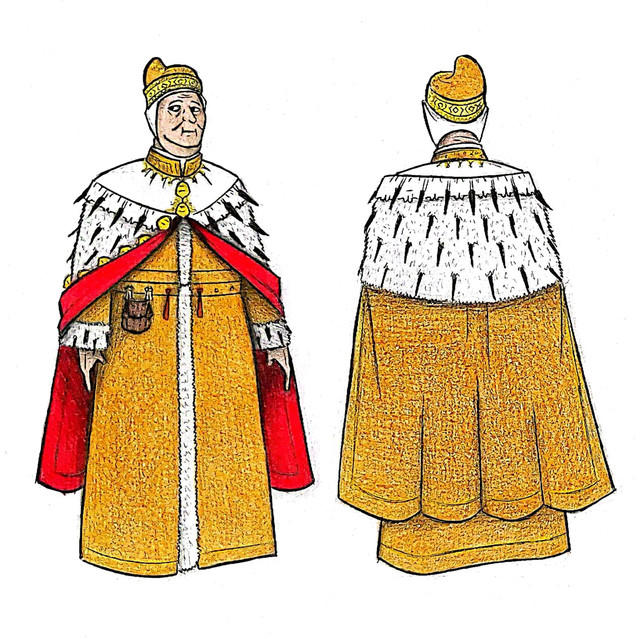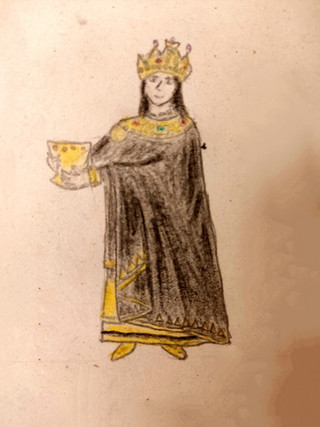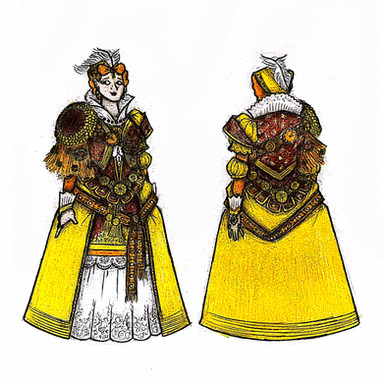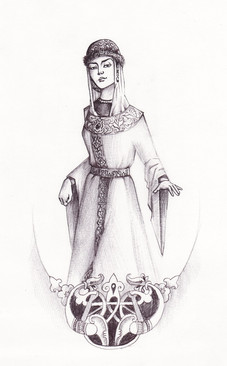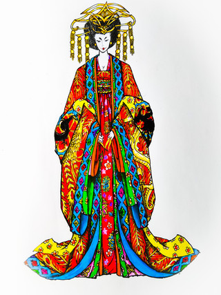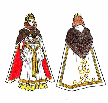 Design notes, like with Justinian, this piece is pretty much entirely derived from the famous mosaics of the Basilica of San Vitale. It's an absolutely gorgeous piece which depicts Theodora taking charge in the imperial court like the badass girl boss she was. It also seems to be the only contemporary depiction of her there is, or at least it's the only one which every artist and their dog takes inspiration from. To give the composition a little more detail, I supplemented it with some details from Victorien Sardou's 1884 play simply titled Théodora. Specifically, I referenced the costume worn by actress Sarah Bernhardt, mostly for the sleeves. It's kinda fitting how we've come full circle with an actress playing an ancient actress, when you think about it. I think the shape of the cape could use a little tweaking (and that purple really didn't want to get onto the paper without a fight, let me tell ya) but other than that, I'm quite happy with this. She's beautiful, confident, and composed, just like the real deal.