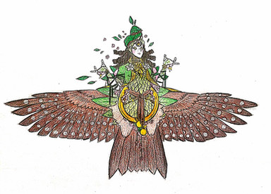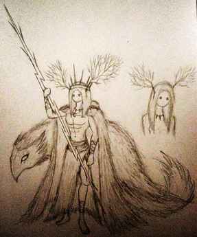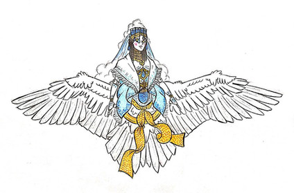 Vohu Manah is one of the six (sometimes seven) divine emanations of Ahura Mazda in Zoroastrian cosmology known as the Amesha Spentas. His name literally translates to "Good Thoughts", an echo of the religion's famous maxim: "Good thoughts, good words, good deeds." This is considered to be the highest goal of followers of Zoroastrianism, best embodied through acts of charity, kindness, and giving to the poor. Indeed, Vohu Manah is considered to be the embodiment of Purpose itself. He is the emanation which represents the lofty goal of any mortal to become as holy as their creator. He is in direct opposition to the demon Akem Manah, the entity who embodies the path of the evil destroyer Angra Mainyu. Freewill is extremely important in Zoroastrianism, as it is the foundational mechanism behind the faith. They believe the physical world was created by Ahura Mazda as a trap for Angra Mainyu, and we humans, being directly in the middle of these universal opposites, must choose which side we wish to be on during the final battle at the end of time. Obviously to a Zoroastrian, the best choice is the god of all things good and happiness and sunshine, Ahura Mazda.As mentioned in the last drawing, later chroniclers often linked each Amesha Spenta with an element of creation. Haurvatat is water, Asha Vahishta is fire, and Vohu Manah is usually linked to animal life more generally, with an emphasis on cattle specifically. Given how sacred cattle are held in ancient Iran's neighboring cultures, it's not hard to imagine that they would hold a special place in the hearts of Zoroastrians as well. This makes sense, after all, when for most of agricultural history, your cow was the lifeblood of your family farm, providing meat and milk in a cycle that lasts as long as you have cattle to reproduce. The Gathas, sacred poems often attributed to the prophet Zarathustra himself, make passing mentions of a primordial cow, Gavaevodata, who suffers under the onslaught of the demons commanded by Angra Mainyu. While the noble beast succumbed to its wounds, under the care of the Moon its "chihr" (a strange word which seems to best be translated as "seed" or more specifically "essence") is preserved and purified. From this "chihr", all the world's animals are created, hence why Vohu Manah represents all animal life despite his specific affinity for cattle.