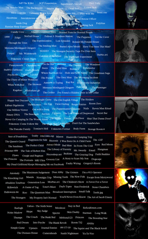 Creepypasta Story list:Abandoned By Disney | Candle Cove | Mereana Mordegard Glesgorv | Barbie.avi | Zalgo