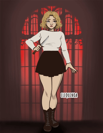 #brunette #dark #digital #digitalart #digitaldrawing #gift #knife #oc #originalcharacter #stainedglass #stainedglasswindow #twilight #vampire #vampiregirl #giftforafriend #brownhairgirl #vampiretwilight