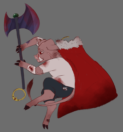 A redesign from an older Technoblade design I made a while ago (can't find the old design in my files oof)Kept the cape and pants, but added his netherite axe along with a wither skull pendant that attaches to the collar of the cape.