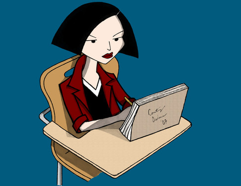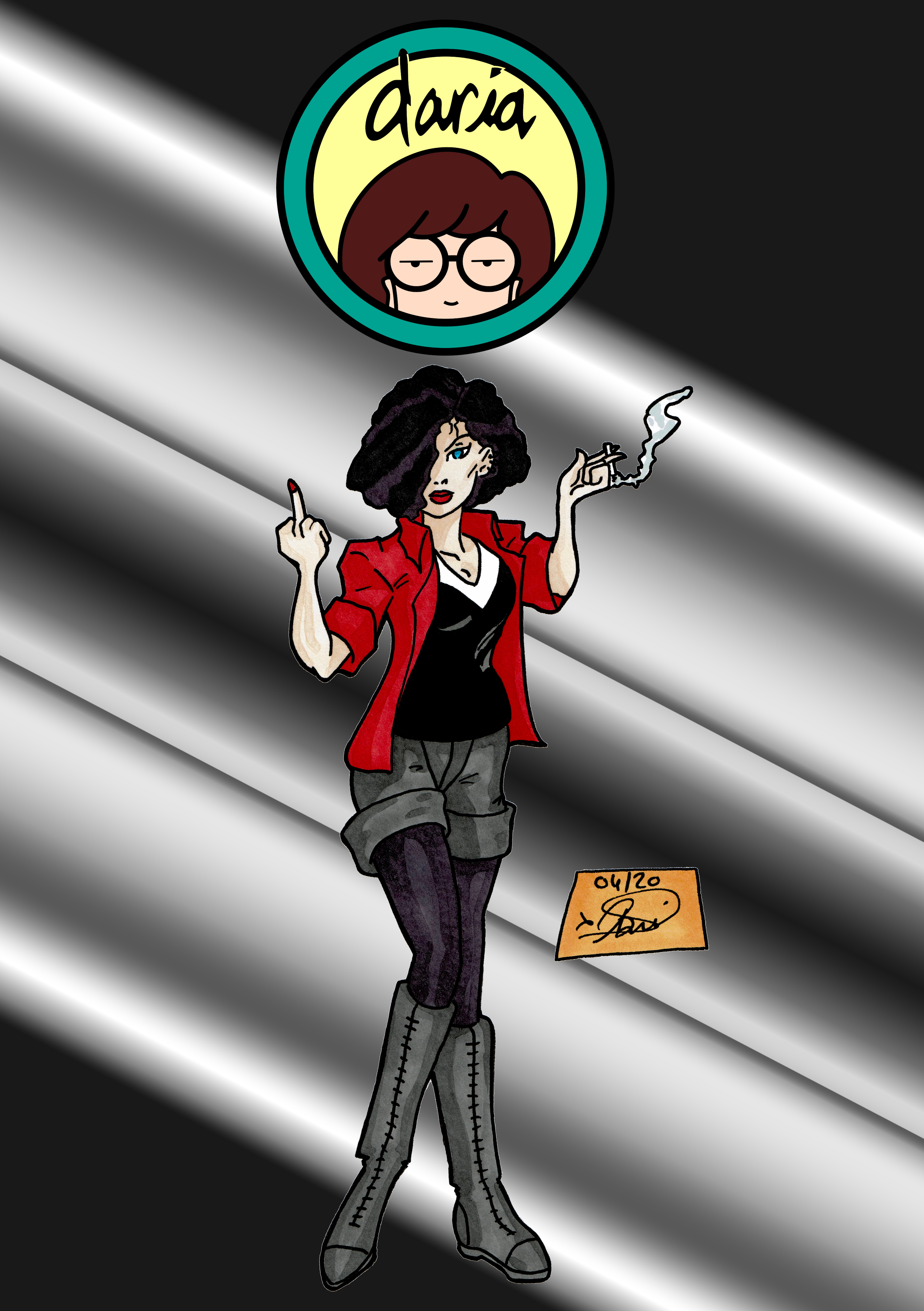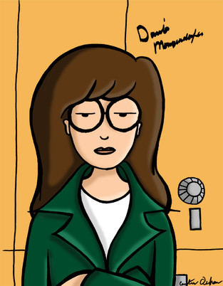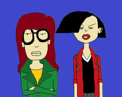 This is the other half that goes with Daria Looking Up. I had done this before, but I wanted to redraw it. Unfortunately, I couldn't get Jane to look quite right.Shadows were done with Prismacolors before scanning.