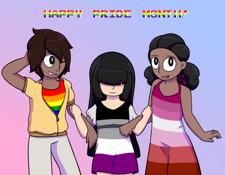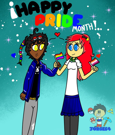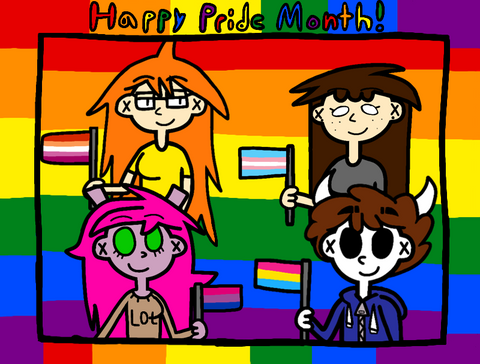 I did this little sketch to celebrate primer because who'd get the damned if a guy loves a guy for a girl loves a girl I don't get the damn and we all shouldn't too.Also yes Lora is a lesbian.