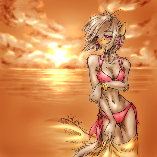 Other than that, the anatomy is great and the colors are pretty. ^^ I want that bathing suit too xD