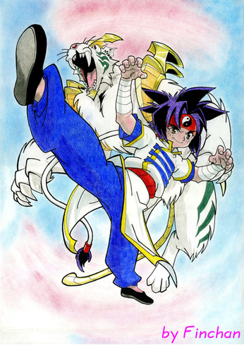This was my first atempt to color in photoshop via layers. And you can see Demon Lord Boom coming out from Catlen's back. I do better stuff now, but this one has some sentimental value.Related content