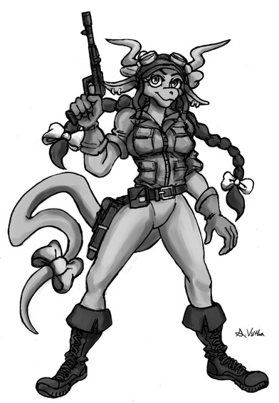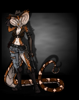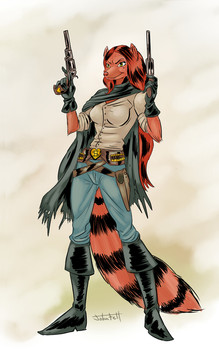 She's like that tough gal that was risen from being unable, or rather forced against, raising her voice to anyone who would trample down on the things said to be true. And she's realistic, *spoiler for those who haven't read* when she makes her first kill she's shocked, hell even nearly unable to snap herself from it but through it she manages to take out the rest of the posse and even bring them in alive! That's a tough gal made and grown up in the style of true grit >=3 and I love that! Plus she's a baaaaaaaaaabe!