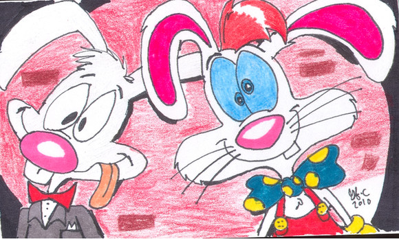 I drew this after I saw a vid on YouTube featuring an original concept for Roger Rabbit (the one on the right), where he originally was gonna be voiced by Pee-Wee Herman! I might draw original Jessica & final version like this.Comment & enjoy!