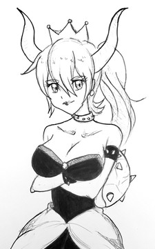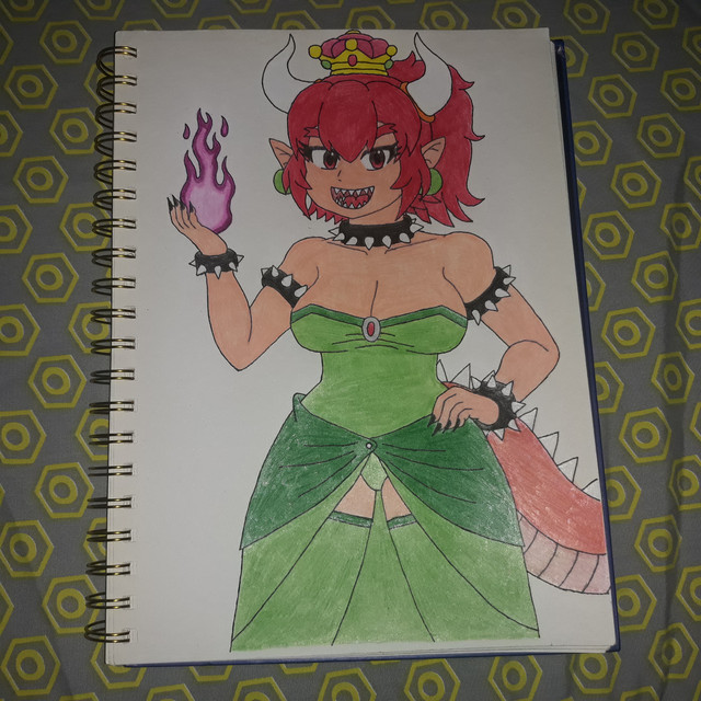 #animedrawing #crown #dress #gloves #horns #inkdrawing #mario #princess #smilinggirl #spikes #traditionalart #traditionaldrawing #traditionalmedia #turtleshell #longhairgirl #ponytailgirl #traditionalartwork #black_dress #ponytailhair #hornsgirl #collaredgirl #fire #bowsettefanart #bowsettequeenkoopa #bowsette_fanart