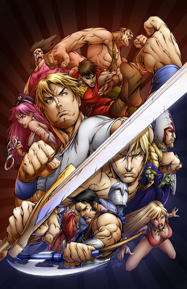 como mola, me encanta los bocetos del fondo, si e sk se te da muy bien el movimiento de los personajes ^^