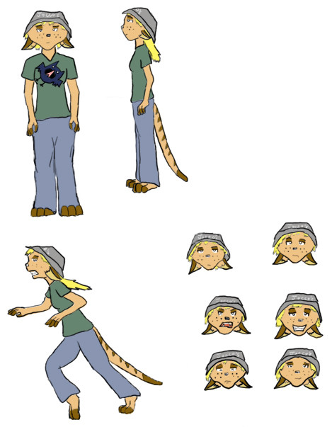 I did not shade the character sheets. Why? Well, to show them to my mentor I would have to print them, and the printer would eat the shading. I meant to go back and shade them later, but I didn't have the time. Oh well.Charlie is Sam's little sister. She's your average 8(ish)-year-old kid, except for the whole being a wolf thing. She can see the figments and thinks they're the coolest things in the world, and they think she's just as awesome. She lives with her parents, but visits Sam every now and then.