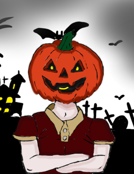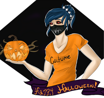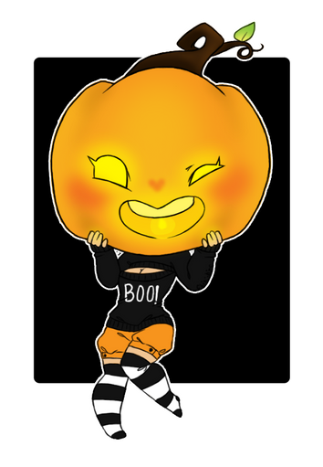 This is a character from one of my books. Her name is Hello, she is a cocoa. She get's offended when people think about Halloween when they see her, because she didn't choose to have a pumpkin for a head.Related content
