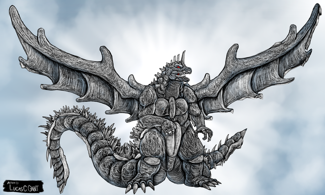 Just an artwork of that supposedly Lost Kaiju, which is an unholy union of Godzilla, Battra and Destoroyah.Godzilla, Battra and Destoroyah are trademarks of Toho Co. Ltd.