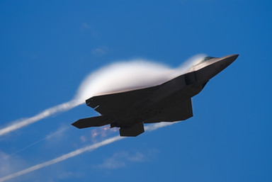 The F-22 Raptor turns towards show center during the weapons bay pass. By Chris Buff of Aviationbuff PhotographyRelated content