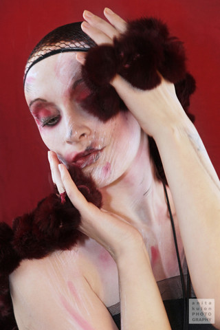 Absolutely love this photograph. The renaissance collar and the hand jewelry are very cool and the eye and lip makeup contrast perfectly with the rest of the photo. Thank you.