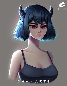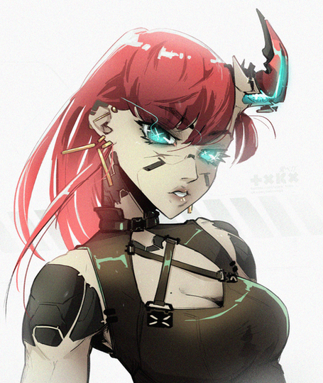 #artwork #characterdesign #demongirl #digitalpainting #female #girlportrait #horns #mecha #painting