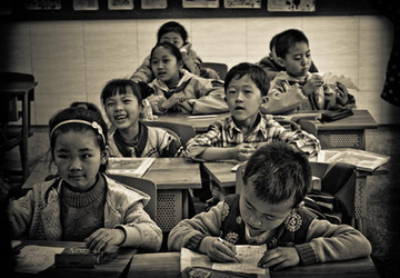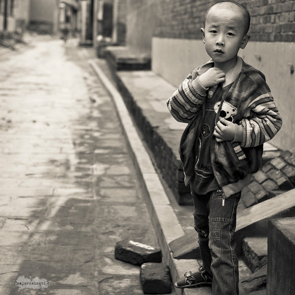 When I took this shot there were a lot of things going though my head, like why does this kid have dirt all over his face, why is he standing there staring into space as if im not there, and where can I get one of those (Lets) Go!!! doremon shirt? Needless to say the more I look at this shot the more questions I have about it. The kid in the background doing his homework just looked at him as he stood there not moving or anything.This shot really makes me wonder about everything that led up to this scene, this little boy is such an enigmaβ¦