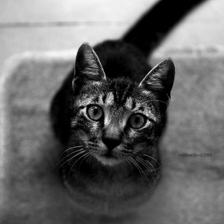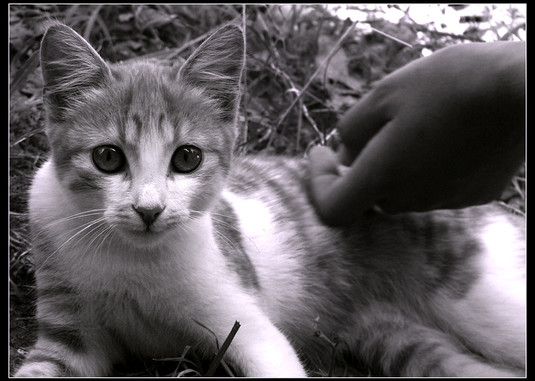 what a adorable little cat!! he's such a little darling~~ <3<3<3 makes me wish i had a kitten!! i love the perspective, and the kitten's so sweet!! his eyes are so cuuuute