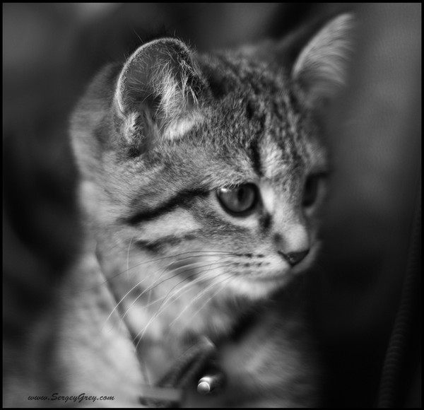 Such a cute little kitty face! The eyes are so big in comparison with the mouth and nose. Sweet portrait.