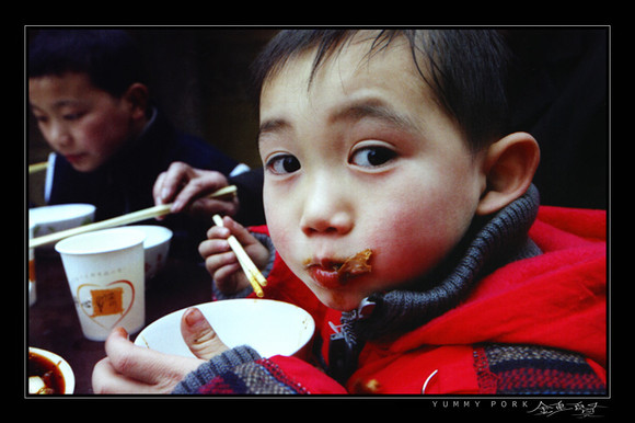 I mean the expression on his face states that he is hungry for food.