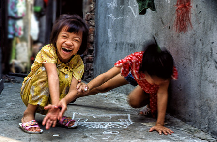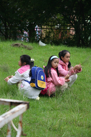 Girls in Guizhou playing a game whose name I guess roughly translated to sticks. The idea of the game seems to be similar to jacks except instead of bouncing a ball you toss something into the air and grab as many of the bamboo sticks as you can then catch the object before it hits the ground.Canon 30V, Canon 50mm f/1.4 Lens, Fujichrome Velvia 100F