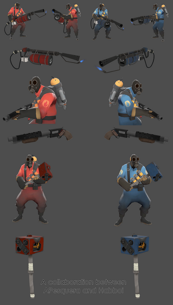 So I learned how to extract models and textures from Team Fortress 2, a game that has entertained me massively from mid 2008 to early 2012. I don't play it much anymore but wanted to do a tribute to my main class, the enigmatic, shambling bag of crazy that is the Pyro!