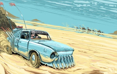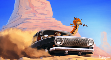#digitalart #car #vehicle #1957 #air #anthro #automobile #bel #canidae #chevrolet #desert #dingo #dog #frilled #furry #furryanthro #furryfemale #lizard #madmax #wasteland #agamidae #furrymale