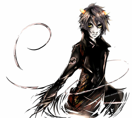 hahah no problem! it's not stupid, calmasis hasn't exactly appeared a lot in homestuck. basically post-scratch rose wrote a book called, 'complacency of the learned', which involves an androgynous wizard called 'calmasis'. the book references a lot of events which involved uu and UU and calmasis represents both of them in the book. calmasis first appeared here if you want to look - [link] if you are up to date with homestuck there was a panel not that long ago which featured calmasis with both uu's and UU's chains on his feet. but really most people draw him because of her/his character design.
