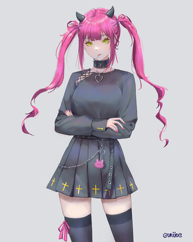 #digitalart #anime #animegirl #fanart #bat #glasses #leather #pigtails #redhairedgirl #kemonomimi #pigtailshairstyle #vtuberfanart